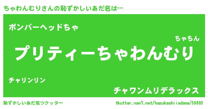 | 意味不明あだ名 | 『住所不定無職ちゃわんむり(41歳)』 |