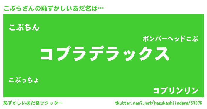 | 意味不明あだ名 | 『自称こぶら』『永久保存こぶら』 |