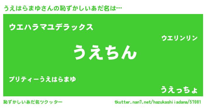 | ヘコむあだ名 | 『うえはらまゆ(震え声)』『なまこ酢』 |