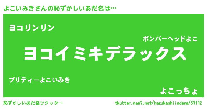 | 男性向けラノベタイトル風あだ名 | 『Re:よこいみきから始める異世界生活』 |