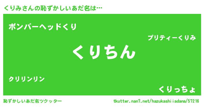 | ヒーロー風カッコイイあだ名 | 『ネオクリミ』『正義の使者くりみ』 |