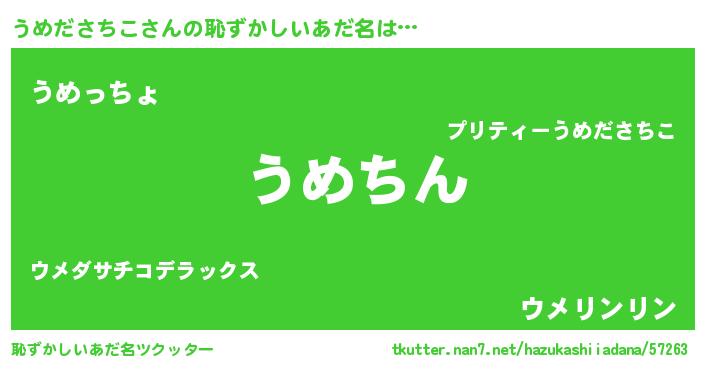 | 意味不明あだ名 | 『永久保存うめださちこ』 |