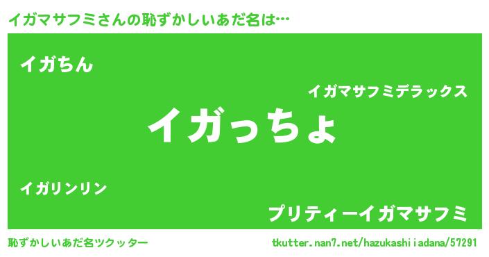 | 男性向けラノベタイトル風あだ名 | 『転生したらイガマサフミだった件』 |