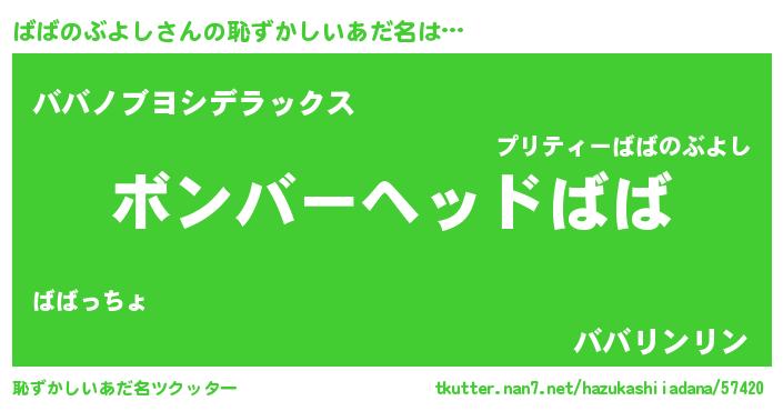 | 欧米人風あだ名 | 『ダレノガレばばのぶよし』 |