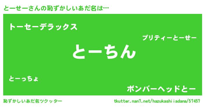 | 意味不明あだ名 | 『永久保存とーせー』『自称とーせー』 |
