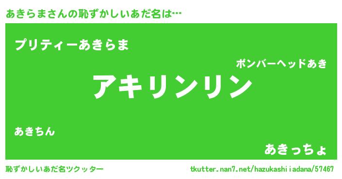| ヘコむあだ名 | 『あきを』『あきにー』『レバニラ』 |