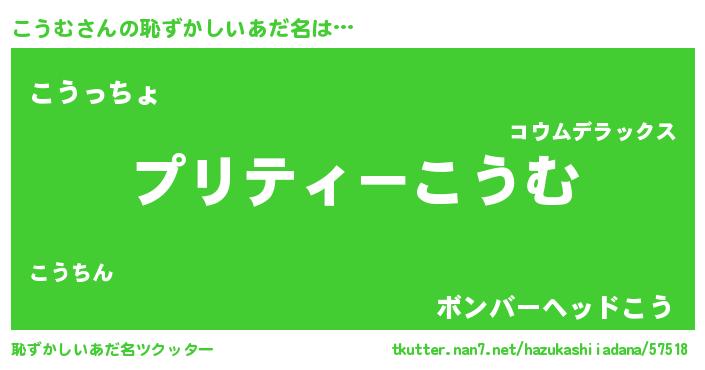 | 欧米人風あだ名 | 『アンジェラ・こうむ』『マイケルこうむ』 |