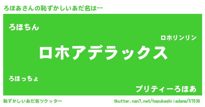 | ヘコむあだ名 | 『ろほあ(苦笑)』『ろほもー』 |