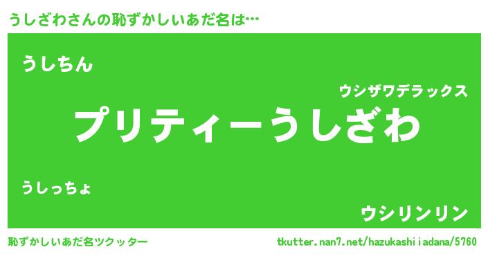 | ヘコむあだ名 | 『うしふぇ~』『うしざわ(小並感)』 |