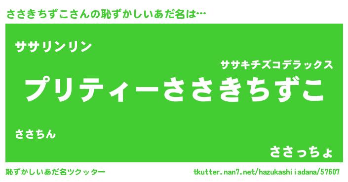 | ヒーロー風カッコイイあだ名 | 『スーパーササキチズコ』『黄金騎士ササ』 |