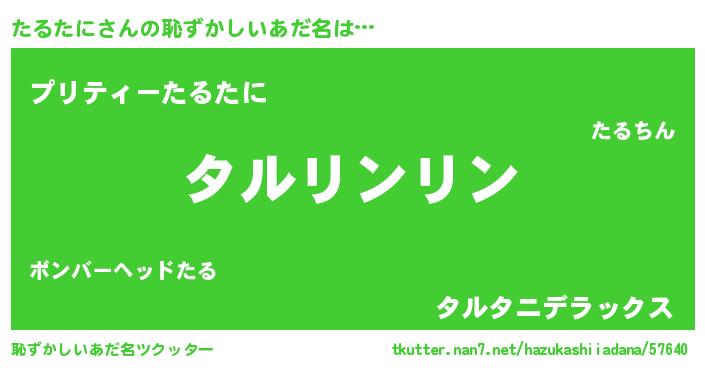 | 男性向けラノベタイトル風あだ名 | 『ダンジョンにたるたにを求めるのは間違っているだろうか』 |