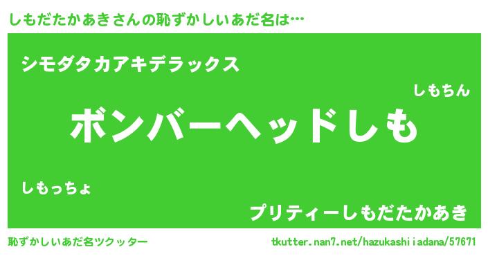 | ヒーロー風カッコイイあだ名 | 『正義の使者しもだたかあき』 |