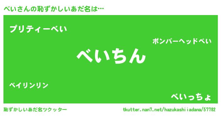 | ヘコむあだ名 | 『べい(笑)』『べいにー』『なまこ酢』 |