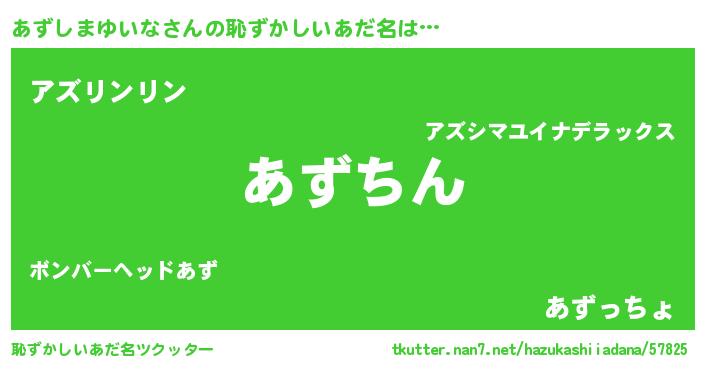 | 意味不明あだ名 | 『永久保存あずしまゆいな』 |