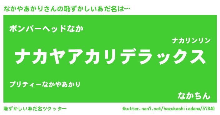 | ヘコむあだ名 | 『なかやあかり(震え声)』『なかっぺ』 |