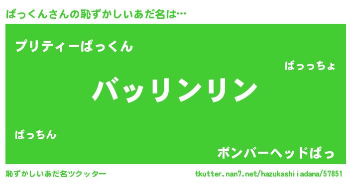| 胡散臭い通販商品みたいなあだ名 | 『信頼と実績のサプリメント…その名も「ばっくん」』 |