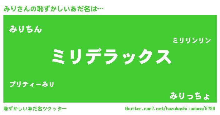 | 意味不明あだ名 | 『自称みり』『永久保存みり』 |
