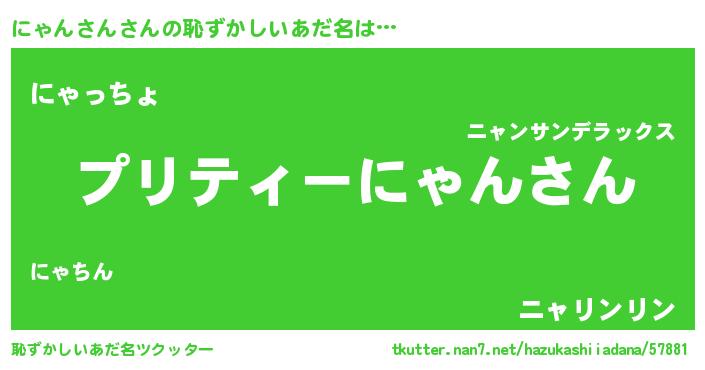 | 男性向けラノベタイトル風あだ名 | 『にゃんさんの憂鬱』『緋弾のニャンサン』 |