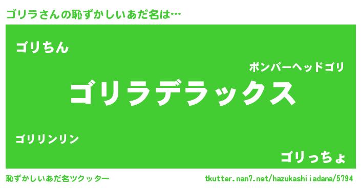 | ヒーロー風カッコイイあだ名 | 『仮面ゴリダー』『ウルトラ戦士ゴリラ』 |