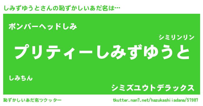 | 意味不明あだ名 | 『住所不定無職しみずゆうと(50歳)』 |