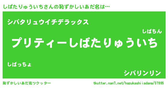 | 男性向けラノベタイトル風あだ名 | 『しばたりゅういち~年齢イコール彼女いない歴の魔法使い~』 |