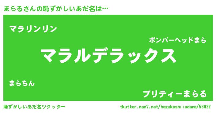 | ヒーロー風カッコイイあだ名 | 『ウルトラ戦士マラル』『魔戒騎士マラ』 |