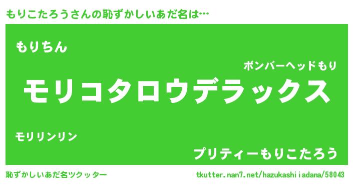 | ヘコむあだ名 | 『もりこたろう(苦笑)』『もりっふぃ~』 |