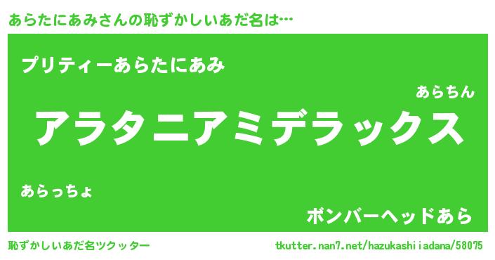 | 意味不明あだ名 | 『自称あらたにあみ』 |