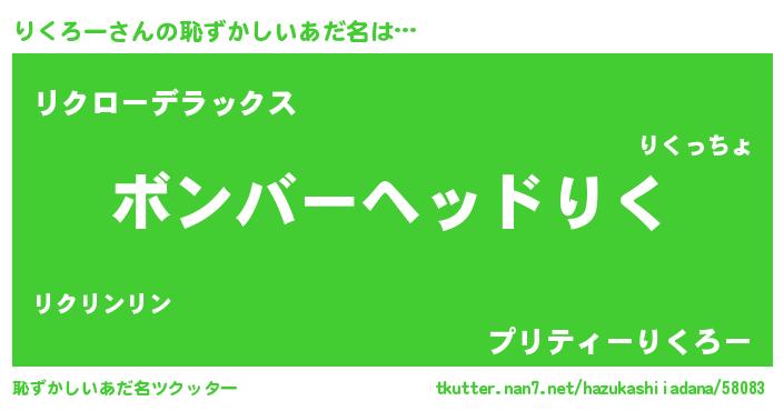 | ヒーロー風カッコイイあだ名 | 『慈愛の使者りくろー』『仮面リクダー』 |