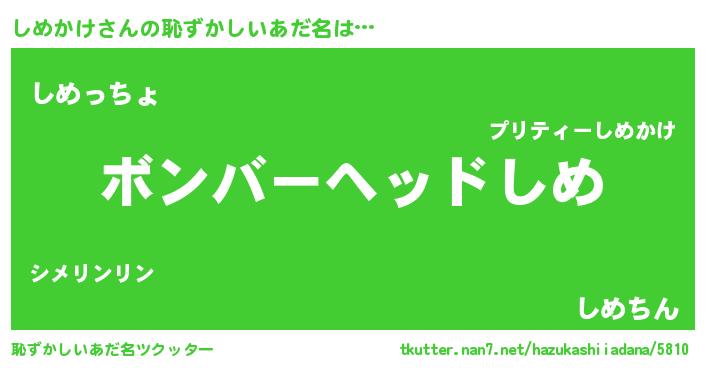 | ヒーロー風カッコイイあだ名 | 『仮面シメダー』『正義の使者しめかけ』 |