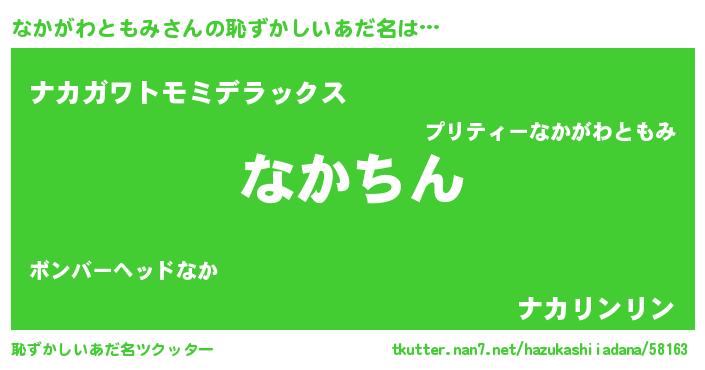 | 意味不明あだ名 | 『永久保存なかがわともみ』 |