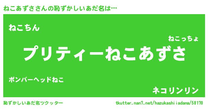 | ヘコむあだ名 | 『ねこにゅー』『ねこあずさ(笑)』 |