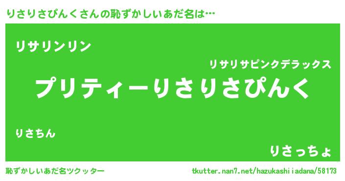 | 男性向けラノベタイトル風あだ名 | 『りさりさぴんくの憂鬱』 |