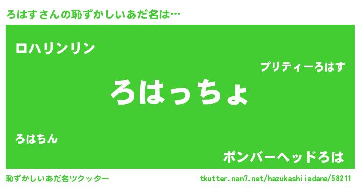 | 伝説のあだ名 | 『秘められし忍者ろはす』 |