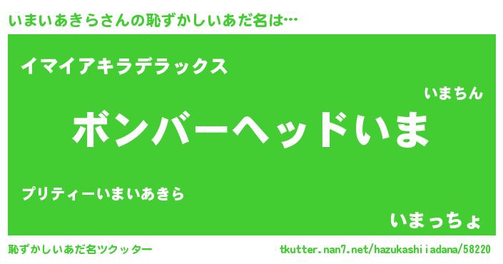 | ヘコむあだ名 | 『豆乳』『いまいあきら(笑)』 |