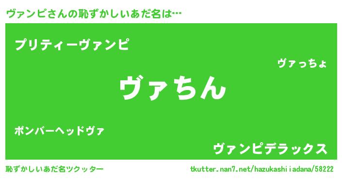 | 男性向けラノベタイトル風あだ名 | 『ヴァンピという概念が存在しない退屈な世界 』 |