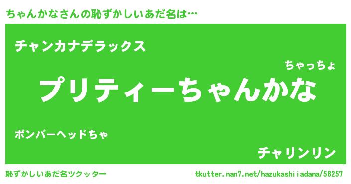 | 男性向けラノベタイトル風あだ名 | 『ちゃんかなの憂鬱』 |