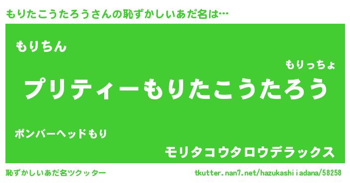 | 男性向けラノベタイトル風あだ名 | 『もりたこうたろうの憂鬱』 |