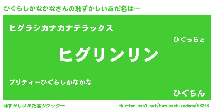 | ポケモン風あだ名 | 『ヒヒグラシカナカナ』『ヒグセウス』 |