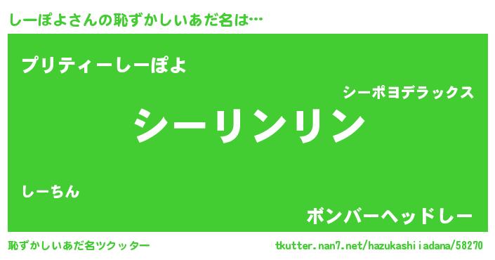 | 意味不明あだ名 | 『とにかく怪しいしーぽよ』 |