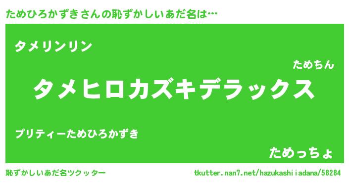 | 男性向けラノベタイトル風あだ名 | 『Re:ためひろかずきから始める異世界生活』 |