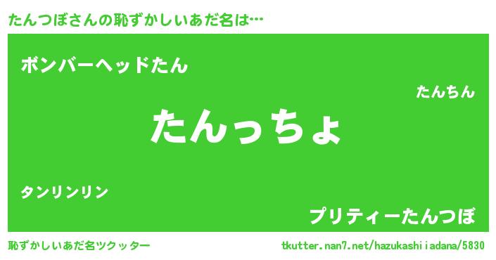 | ヒーロー風カッコイイあだ名 | 『仮面タンダー』『ウルトラたんつぼマン』 |