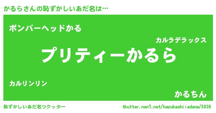 | 胡散臭い通販商品みたいなあだ名 | 『億万長者になれるブレスレット…その名も「かるら」』 |