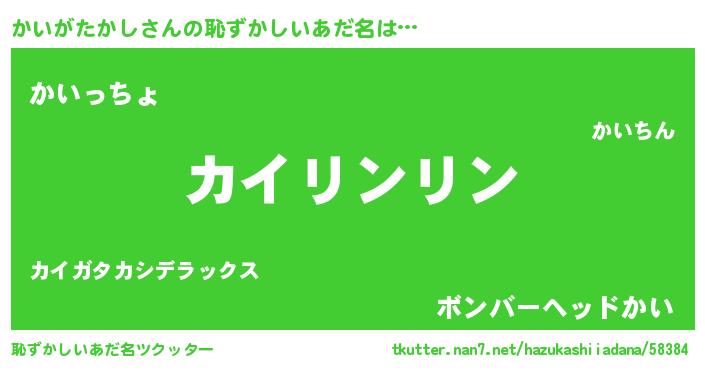 | ヒーロー風カッコイイあだ名 | 『仮面カイダー』『銀牙騎士カイ』 |