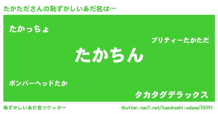 | ヒーロー風カッコイイあだ名 | 『ネオタカタダ』『ウルトラたかただマン』 |