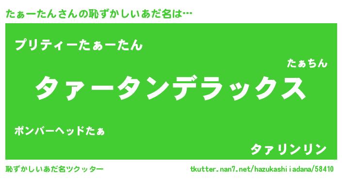 | 意味不明あだ名 | 『自称たぁーたん』『ペロリンたぁーたん』 |