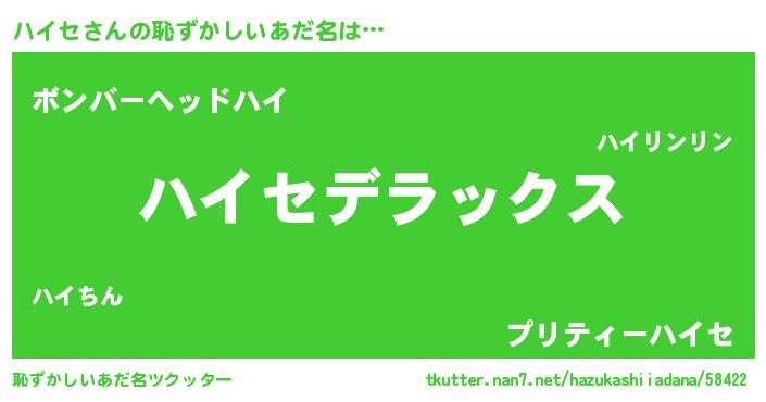 | ヒーロー風カッコイイあだ名 | 『仮面ハイダー』『最強戦士ハイセ』 |