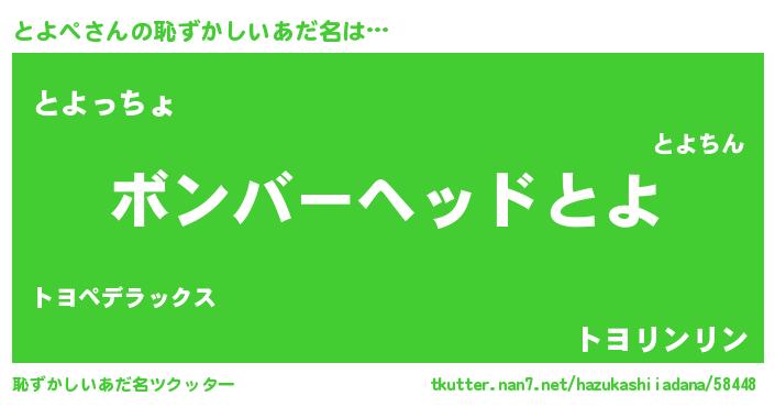 | 意味不明あだ名 | 『住所不定無職とよぺ(93歳)』 |