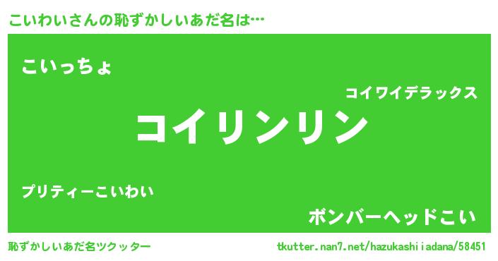 | ヒーロー風カッコイイあだ名 | 『幻影騎士コイ』『ウルトラこいわいマン』 |