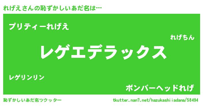 | ヘコむあだ名 | 『れげにゅー』『れげえ(爆)』『豆乳』 |